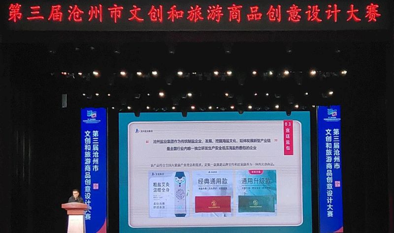 12月2日,第三屆滄州市文創和旅游商品創意設計大賽路演暨頒獎典禮在滄州文化藝術中心舉行!皽纣}”牌海鹽熱敷包(宮廷款)榮獲銀獎。