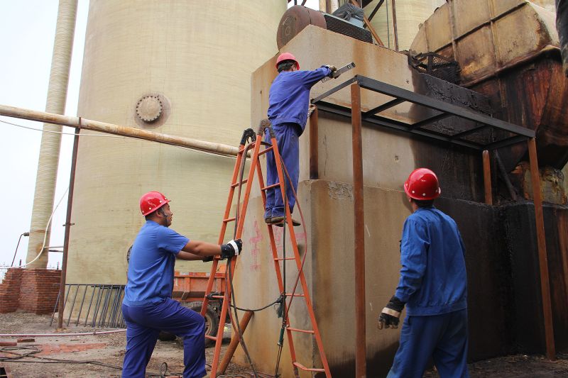 2017年溴素公司成立后,針對落后的操作工藝和設備設施,經理李東亮按照集團公司產業升級的目標,投入大量資金,帶領干部職工先后對廠區及設備進行升級改造。將溴素二廠水泥吹出塔改造為纏繞式玻璃鋼塔 ,對危舊房屋進行拆除,對硫磺燃燒車間、職工餐廳進行整體搬遷,供電設施改造成集成箱式變壓器;將溴素三廠吹出塔內主鹵水管道改為外置,更換了鹵泵和吹出塔填料,對鹵水供鹵管道進行整改,廠區全面硬化,兩個溴素廠面貌為之一新。
