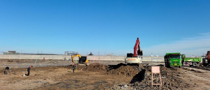 目前,鳴歧化工項目一車間、二車間清槽已全部完成,補樁,樁坑開挖正在加緊施工中。