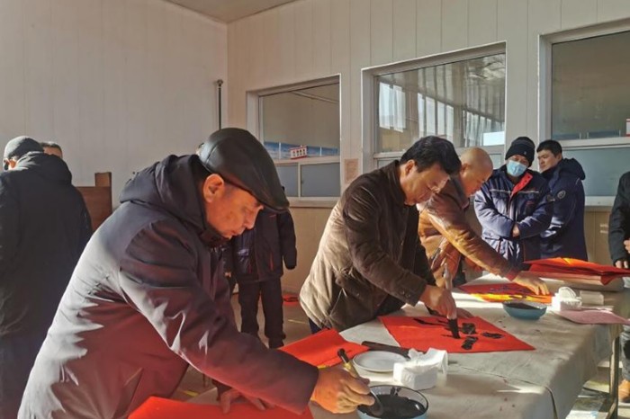 春節臨近,為弘揚企業文化,豐富廣大職工群眾精神文化生活,激發基層干部職工干事創業熱情,營造喜慶祥和的迎新春氛圍,1月23日,公司紀委組織開展了“下基層、送春聯”送;顒;顒佑杉瘓F公司紀委書記狄彬帶隊,邀請了公司退休職工崔玉恒、鄒洪升、李元峰等書法愛好者共同參與。